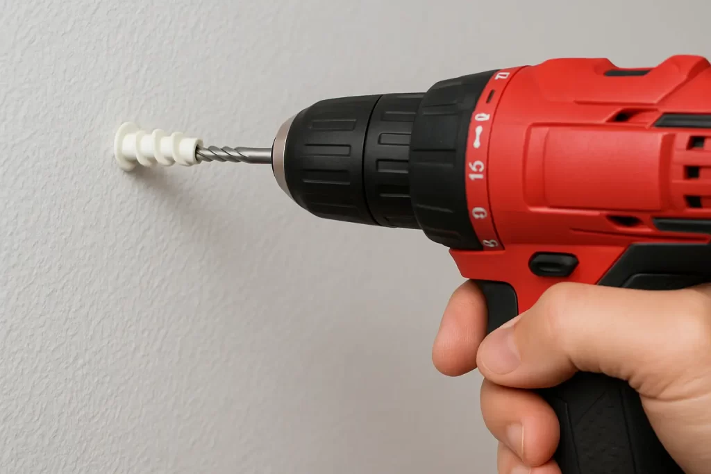 At this point, beginners often wonder how to insert a drywall anchor or even how to install a wall anchor in drywall without splitting the material. Using the correct drill speed and bit size helps prevent cracking.