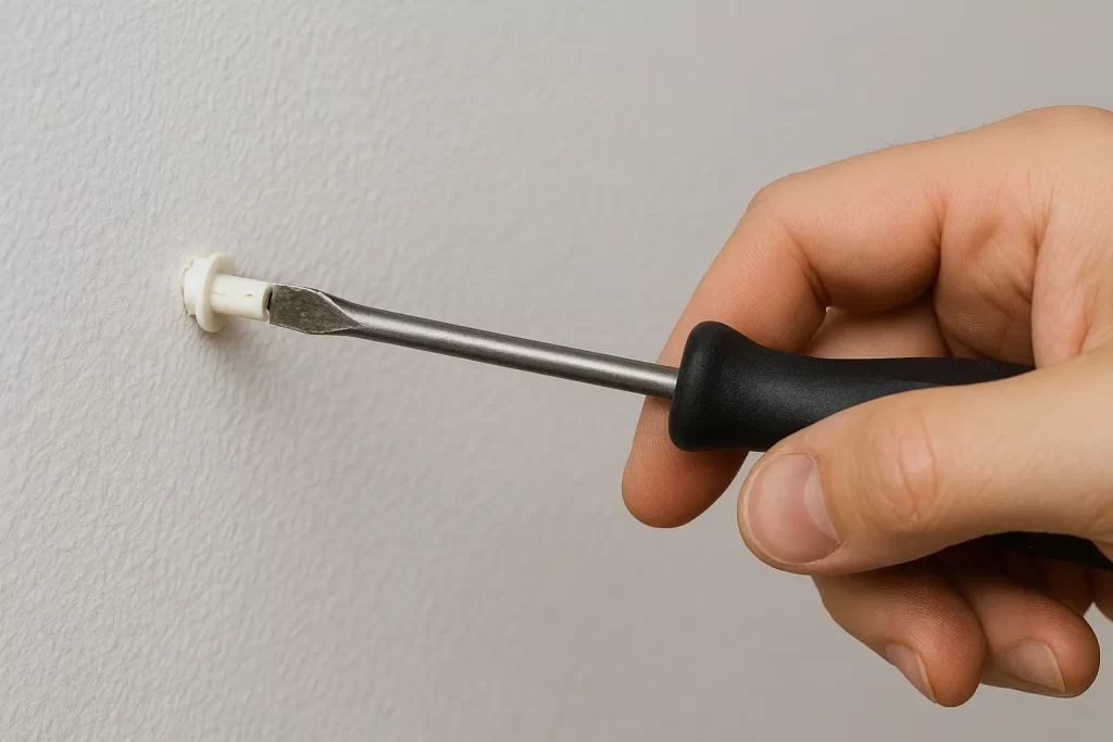 - Use a screwdriver to turn the anchor until it’s flush with the wall surface.